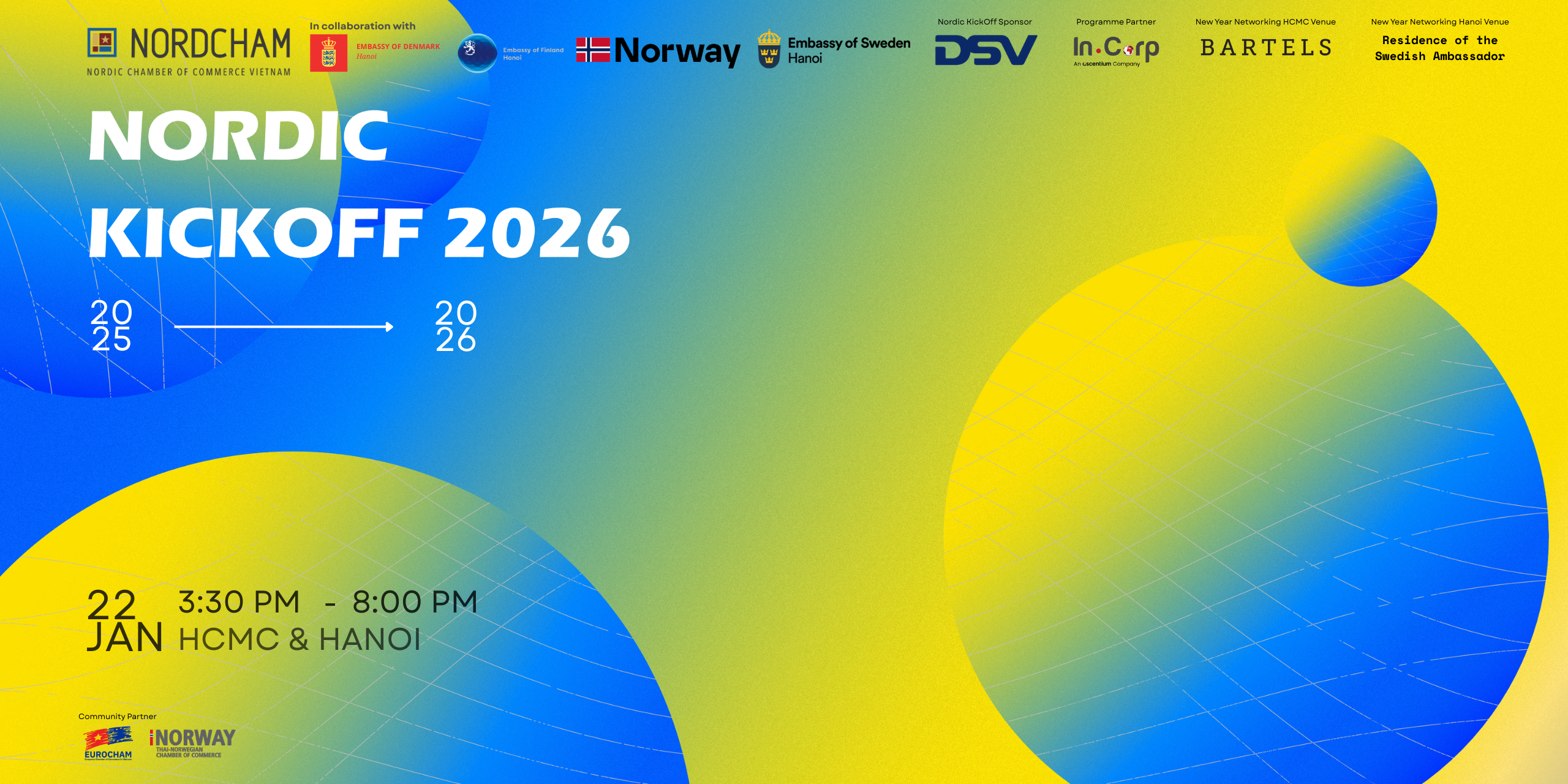 1UPCOMING EVENTS website banner Upcoming Events 22 Jan Nordic KickOff 2026Read More 11 Mar NordCham Annual General Meeting 2026Read More 11 Mar Nordic Happy Hour in HanoiRead MoreView All EventsLatest News Green Industries Summit 2025April 25, 2025News[Event Calendar] Kick off the new year with NordCham’s engaging events!January 3, 2025NewsRenew Your NordCham Membership for 2025December 17, 2024NewsView AllHeimdall Partners Freyja Partners Strategic Partners CORPORATE PARTNERS MARKETING PARTNERS
