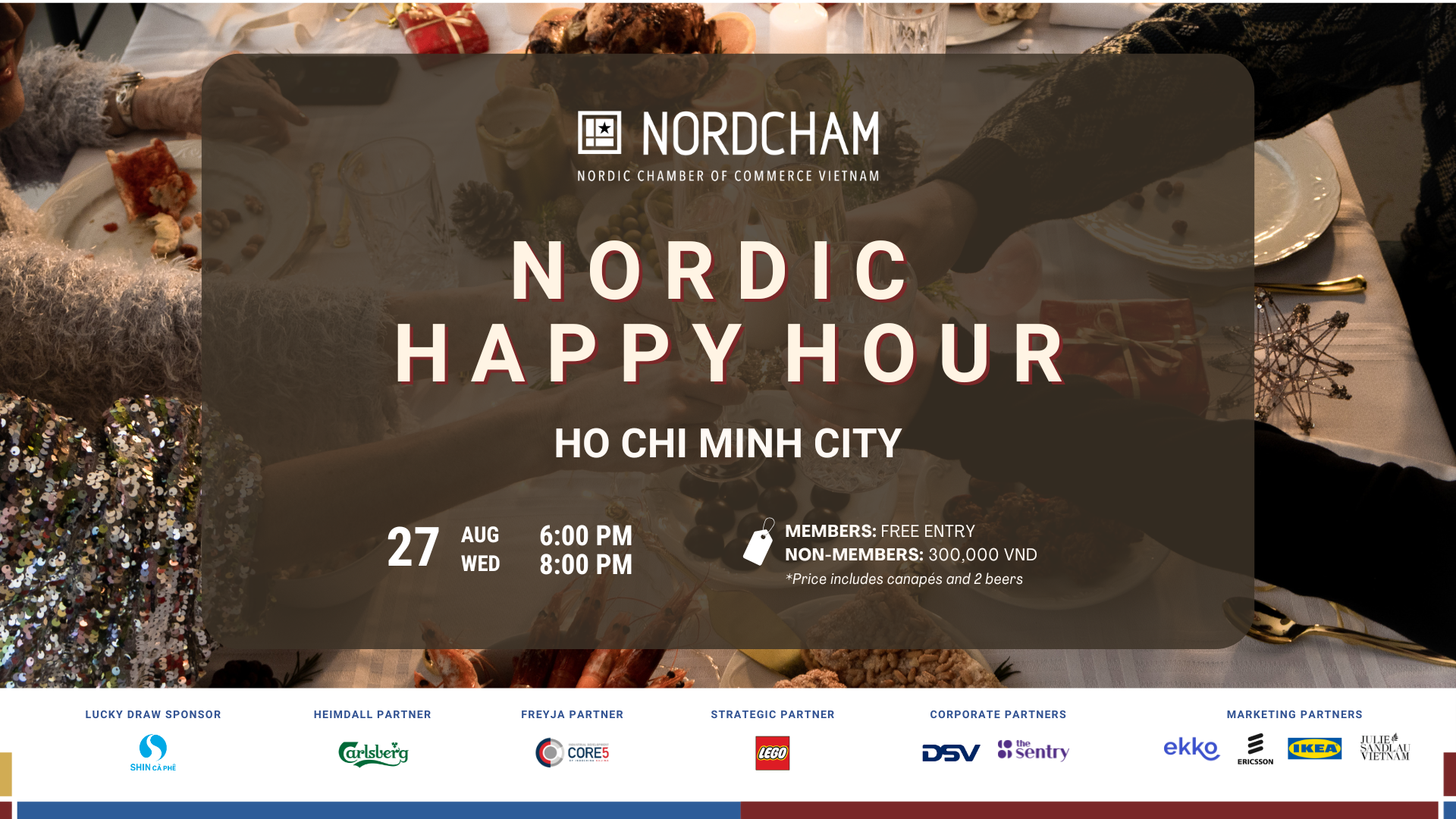 Nordic Happy Hour is coming back to HCMC in August. Come and celebrate the Nordic conviviality with beer, food and attractive prizes.