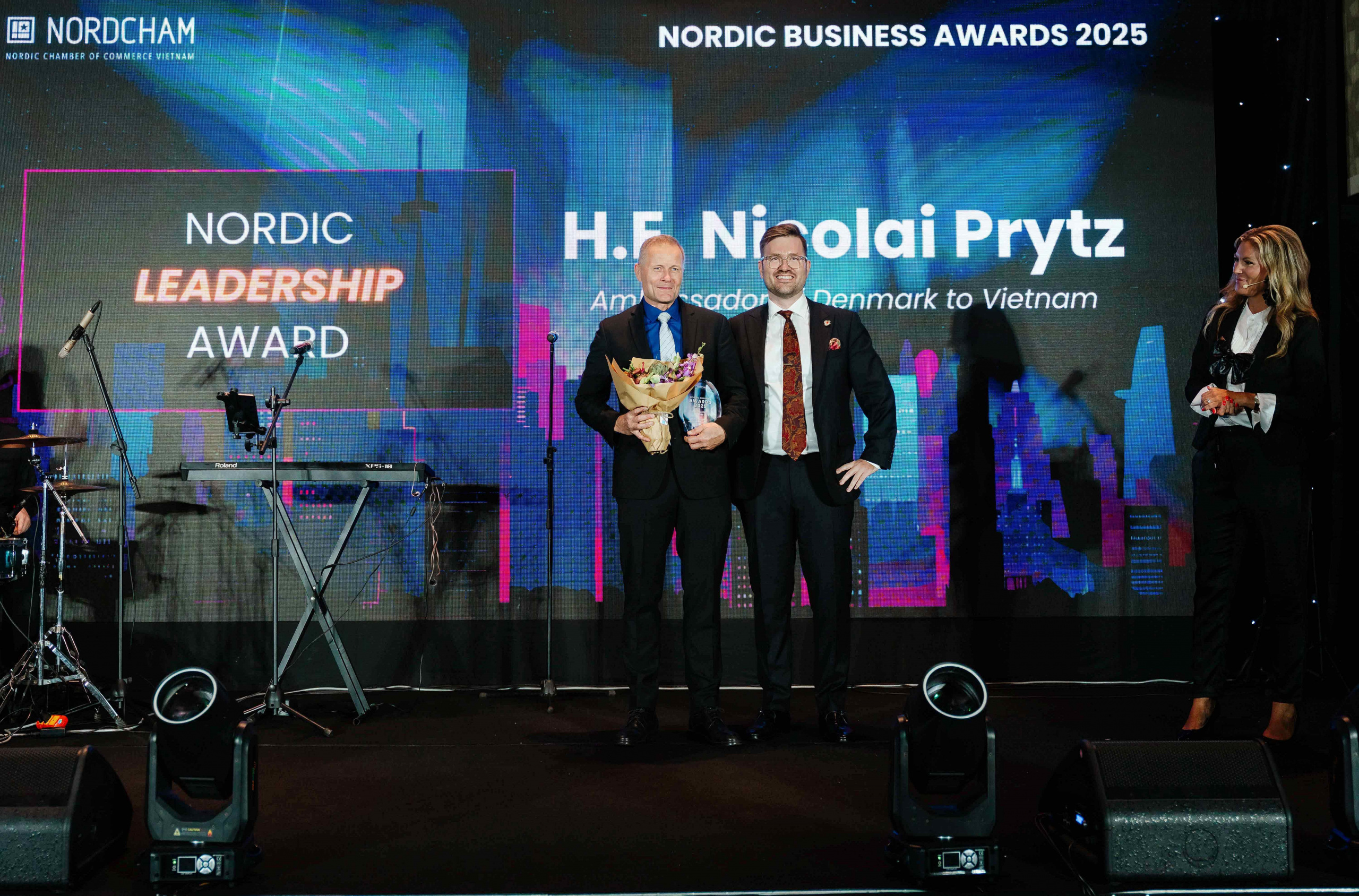 The Nordic Business Awards 2025 took place at Sofitel Saigon Plaza in Ho Chi Minh City, gathering Nordic Ambassadors H.E. Nicolai Prytz, the Ambassador of Denmark to Vietnam, and H.E. Pekka Voutilainen, the Ambassador of Finland to Vietnam with over 200 business leaders and investors from Denmark, Finland, Iceland, Norway and Sweden to celebrate the best of Nordic business community in Vietnam.